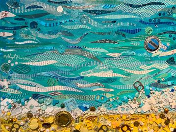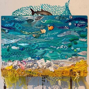 I find inspiration from the beauty and diversity of seascapes and oceans. My art aims to capture their essence—vastness, colors, and teeming life, using recycled materials like plastics and aluminum to honor and protect them. Each piece reflects my reverence for marine ecosystems, urging viewers to preserve and cherish these fragile environments. My art sparks conversations about conservation, fostering a deeper connection to the ocean and the urgent need to protect it for future generations